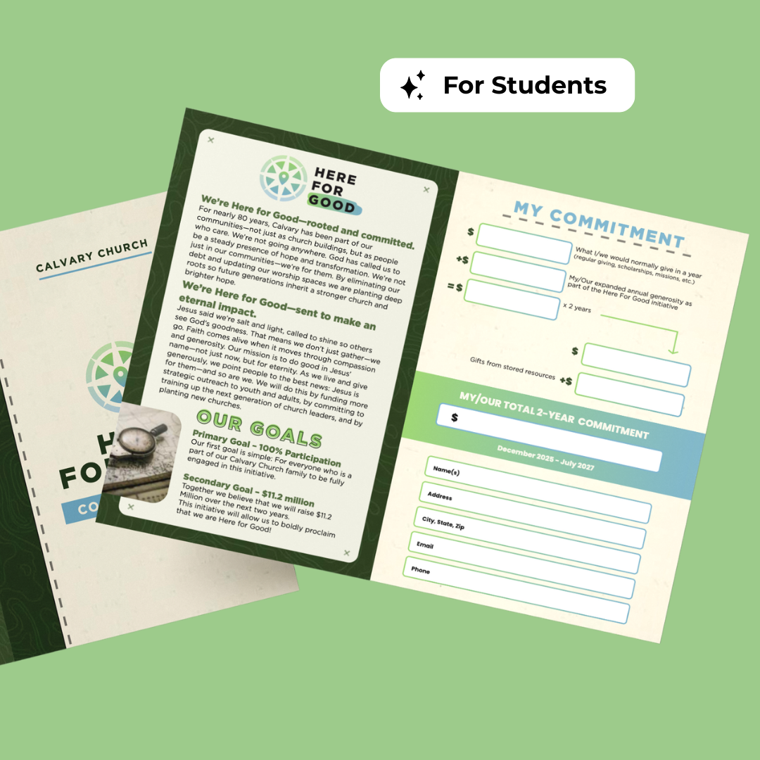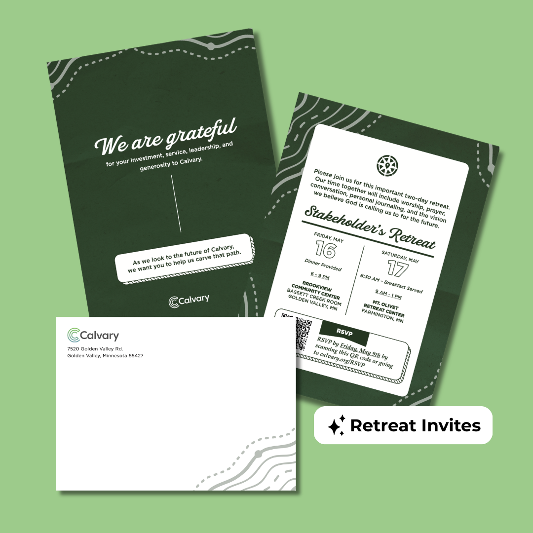 Capital campaign for Calvary Church in Golden Valley, Minnesota. Their team was looking for a signature logo and styled deliverables that encompassed their mission to expand their impact and children’s ministry areas.
