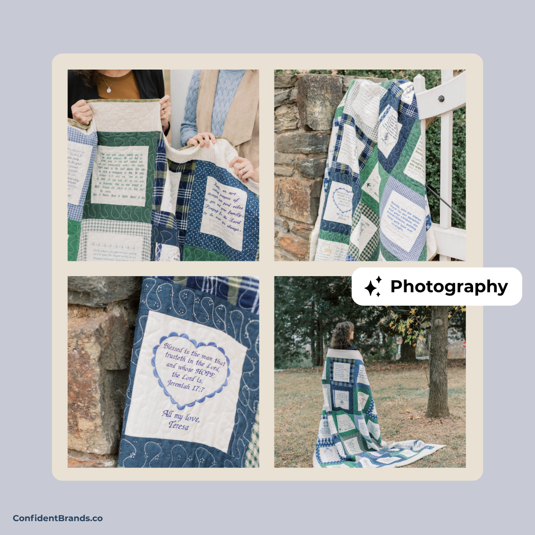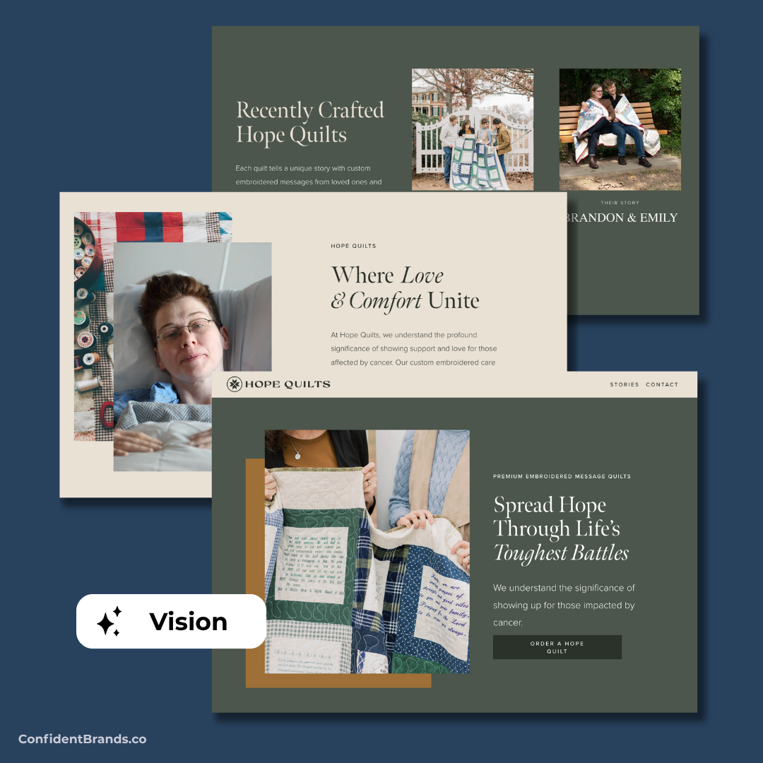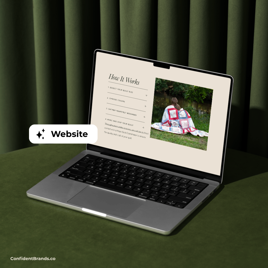 The website design extends this experience, creating a seamless and soothing digital presence. Every page was designed to feel approachable yet polished, guiding users through the process with clarity while visually reflecting the heart behind each quilt. From first impression to final interaction, the brand and website work together to offer a sense of hope, beauty, and meaningful connection.
