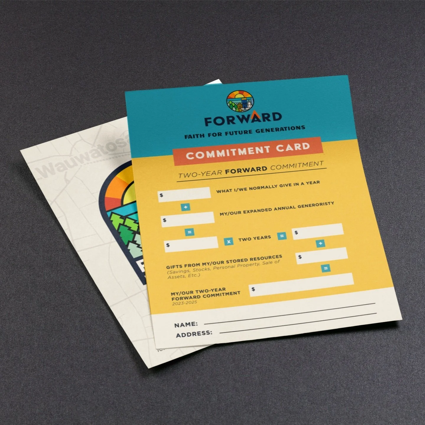 Since this brand identity would be used in private, personal spaces, as well as public congregations, we wanted to ensure this branding felt vibrant, engaging, and fun to lighten up the seriousness of a capital campaign and highlight the excitement around new opportunities for their church to share the gospel in their community.