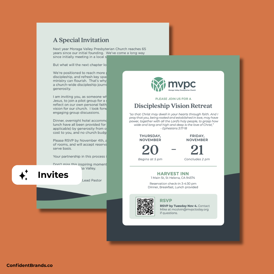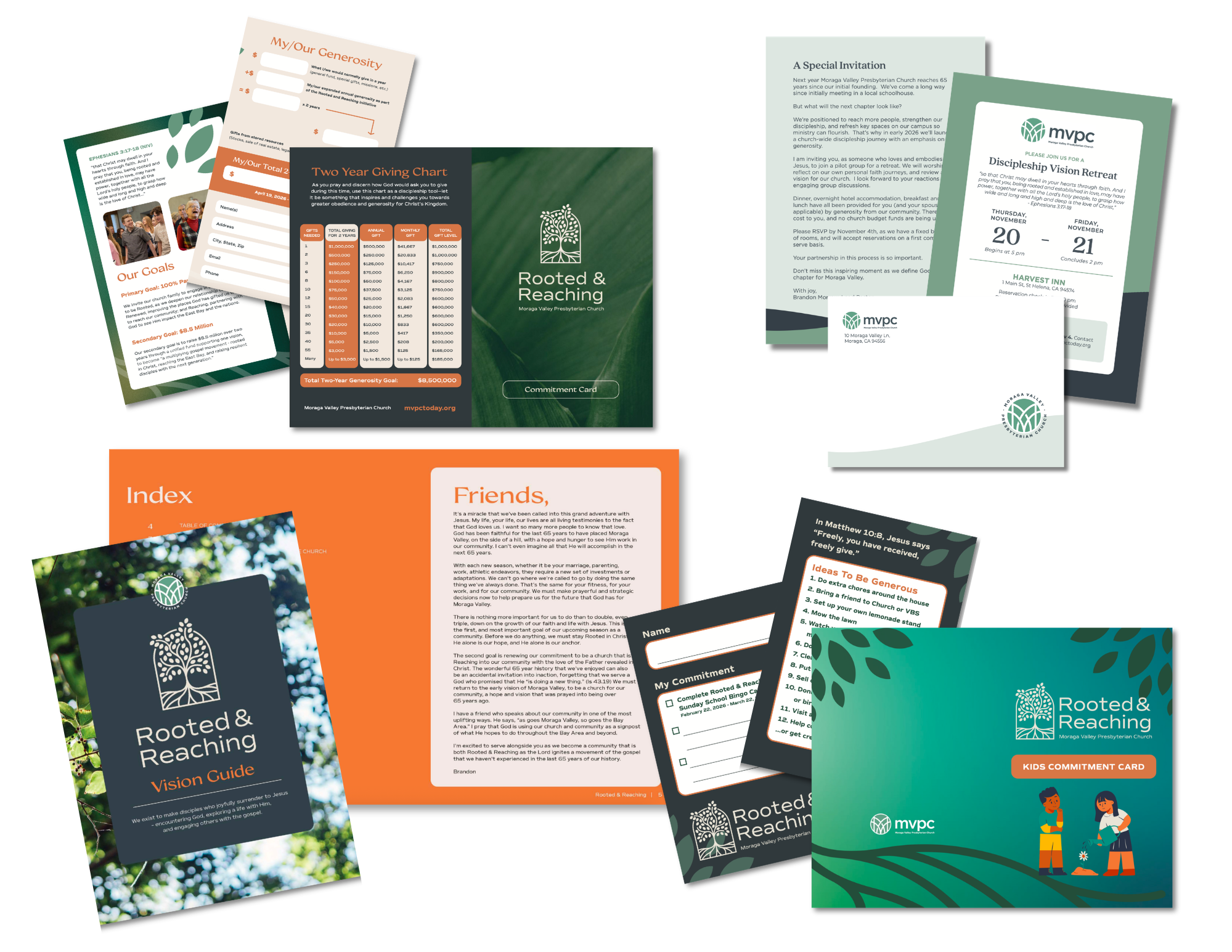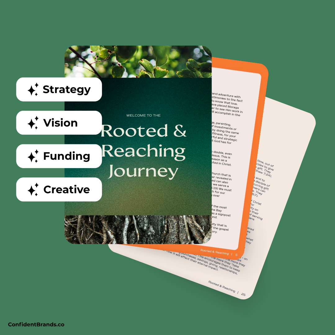 The Rooted & Reaching capital campaign was developed for Moraga Valley Presbyterian Church, located in Moraga Valley, California. Their team sought a distinctive logo and a cohesive visual system that reflected their mission to help one another follow Jesus.